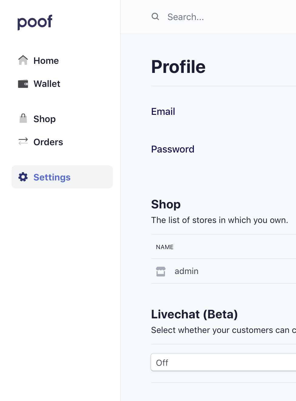 Poof will automatically display a livechat widget in your shop and send messages for you. Your chat sessions are not saved and will disappear after you exit the livechat session.